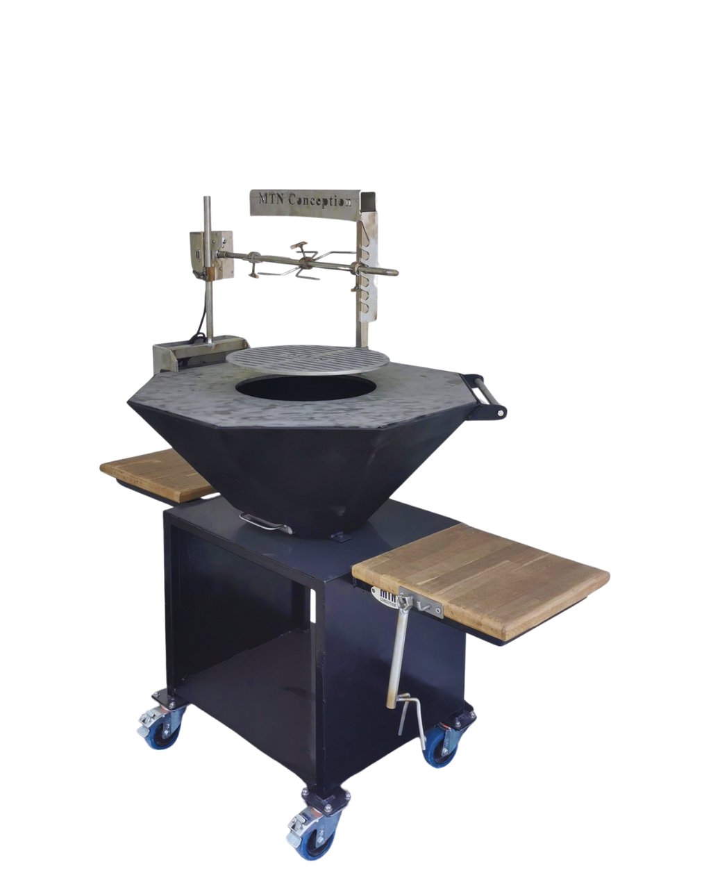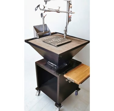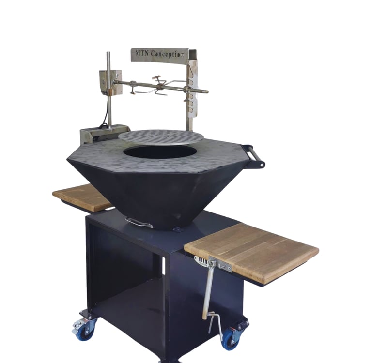 Braseros robustes et personnalisable. Option rôtissoire proposée. Vente ou location pour événements.